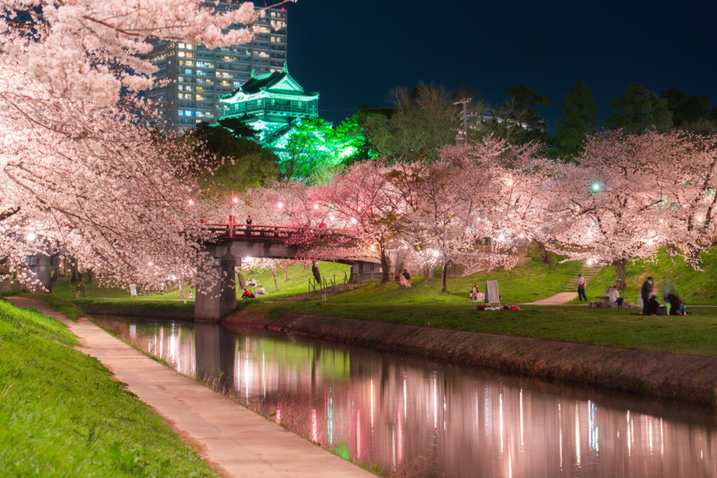 愛知県岡崎市の岡崎公園で撮った桜並木